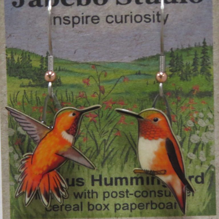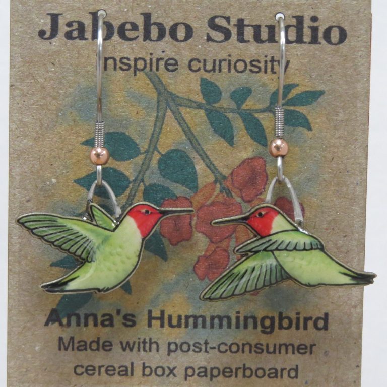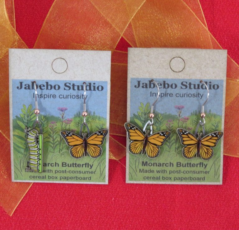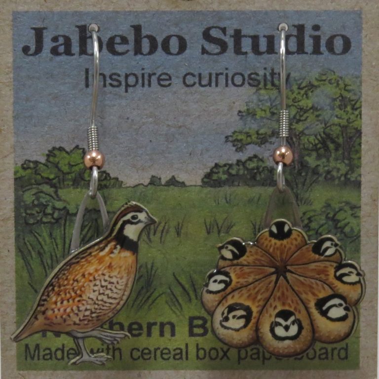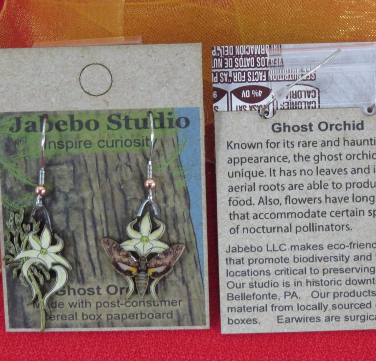 These wonderful earrings are made in Pennsylvania of upcycled post-consumer Cereal Box paperboard! We have over 60 different designs featuring abundant (and CORRECTLY represented) birds, bugs, mammals, plant life, and More. Come See!